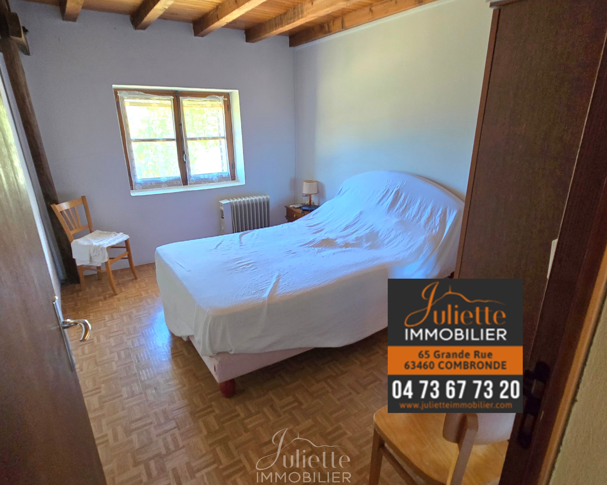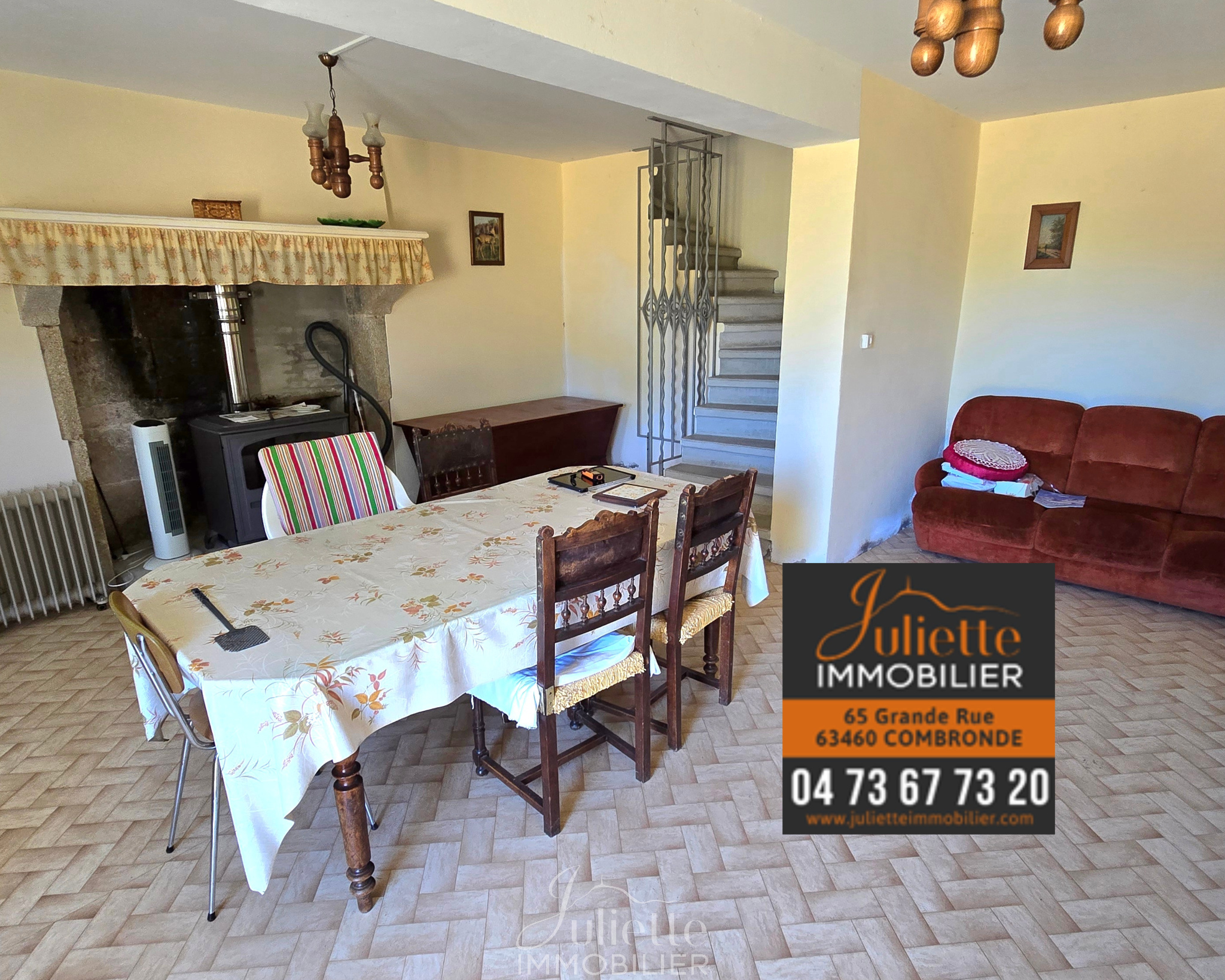 SARL JULIETTE IMMOBILIER - Siège social: 65, Grande Rue 63460 COMBRONDE - RCS Clermont-Ferrand SIRET 833 726 458 00015 - Gérant: Juliette PARRET - CP Transaction N° CPI 6304 2018 000 023 605 délivré par la CCI du Puy de Dôme. Toutes nos offres sur JULIETTE IMMOBILIER. COM. JULIETTE IMMOBILIER vous propose, en EXCLUSIVITÉ, dans le lieu-dit "La Crèche" proche de SERVANT (1kM500), une belle maison de campagne de 96m² habitables (hors dépendances de 52m²) sur 6650m² de parcelles complètes. Cette propriété est composée d'une maison d'habitation composée d'une cuisine dinatoire, d'un grand cellier, d'un séjour. A l'étage, 3 chambres, une salle de douche et un wc séparé. Au dessus, des combles. TOITS RECENTS. Attenantes à la maison, des dépendances composées d'un garage de 22m² et de deux annexes de 7m² et une annexe de 15m². Autour de la maison, un grand terrain de 6650m² arboré. Ensemble à rénover. Chauffage poêle à fioul, radiateurs électrique. Fosse septique à rénover. Idéal chevaux, caprins. SARL JULIETTE IMMOBILIER - Siège social: 65, Grande Rue 63460 COMBRONDE - RCS Clermont-Ferrand SIRET 833 726 458 00015 - Gérant: Juliette PARRET - CP Transaction N° CPI 6304 2018 000 023 605 délivré par la CCI du Puy de Dôme. Toutes nos offres sur JULIETTE IMMOBILIER. COM.